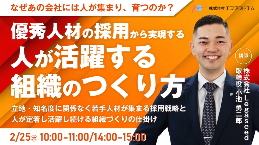 現在は3000社以上の経営者や人事責任者と関わり、採用支援や組織支援を手がける同社取締役の小池勇二郎氏が登壇。